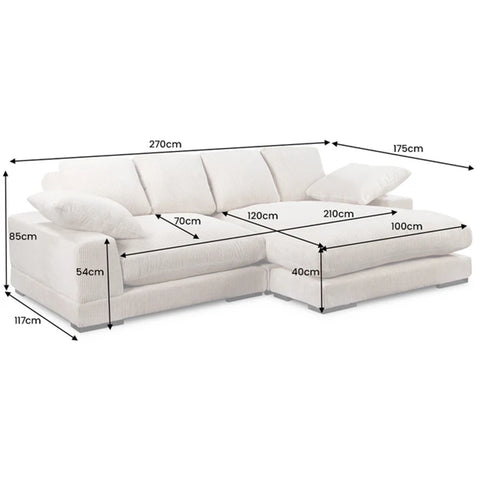 — Dimensiuni: Lungime: 270 cm, Latime: 175 cm, Inaltime: 85 cm, Sezut: 210x70 cm