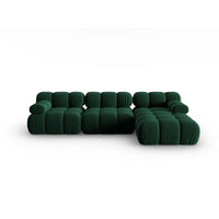 Simțiți-vă liber să reconfigurați aranjamentul modulelor afișate în imagine în funcție de preferințele dvs. Combinați, separați și mutați-le pentru a se armoniza cu estetica spațiului dvs. Datorită suprafeței sale caracteristice, țesătura de catifea poate apărea diferit în funcție de unghiul de lumină. Acest efect este tipic pentru acest tip de material textil. La rearanjarea elementelor modulare de canapea, umbrirea catifelei poate provoca diferențe subtile în aspectul modulelor.