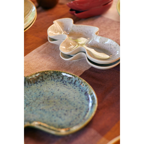 Forma organică, inspirată de scoici, îl face să pară aproape modelat manual. Nu e perfect simetric, iar tocmai asta îi dă personalitate. Combinația de culori se așază diferit de fiecare dată în lumină, iar fiecare utilizare pare ușor diferită. E genul de obiect care nu doar completează masa, ci o definește.
