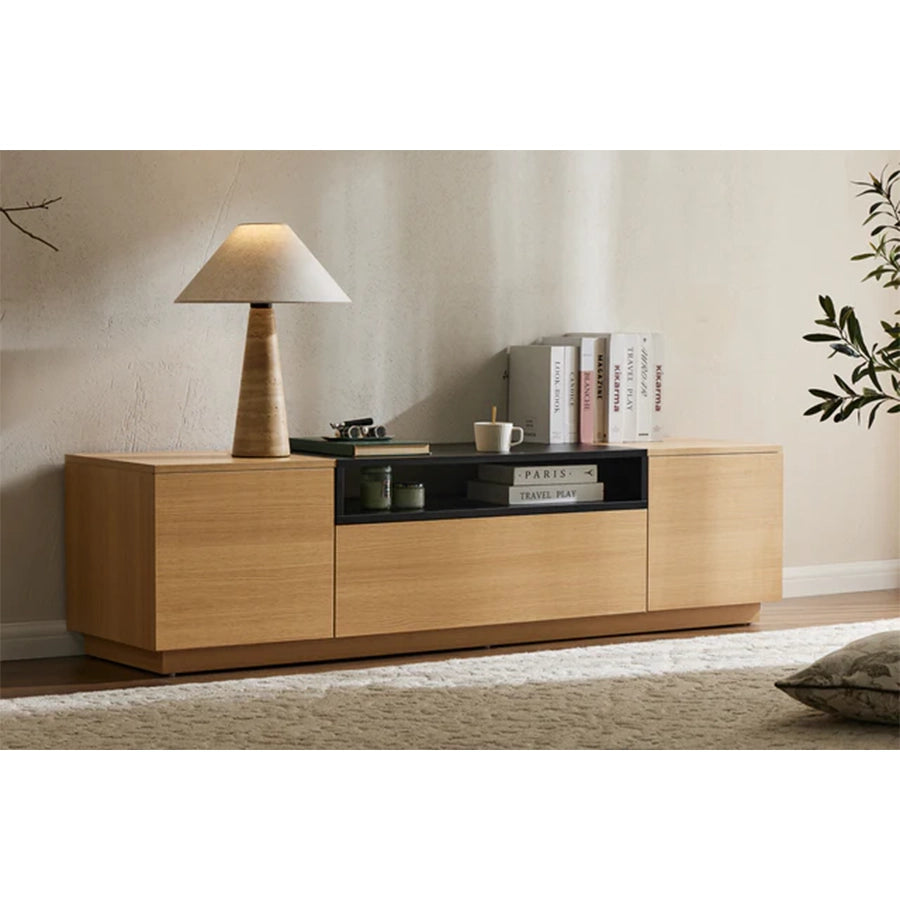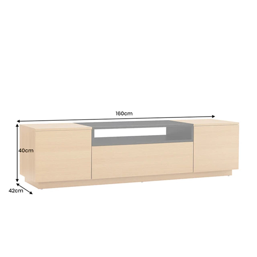 Comoda TV maro din MDF de 160 cm se integrează natural într-un living cu tonuri calde sau neutre — fie lângă o canapea teracota sau grej, fie într-un ansamblu cu textile și covoare cu texturi naturale. Nuanța maro echilibrată creează un fundal calm pentru televizor și obiectele decorative, în timp ce structura simplă oferă șansa de a menține suprafața ordonată.