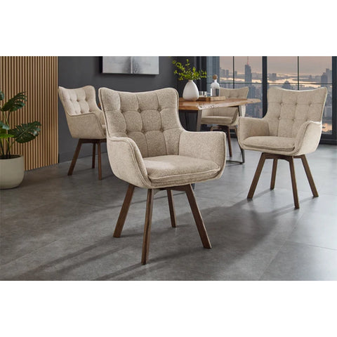 Un scaun care se integrează în jurul mesei fără să atragă toată atenţia — Thor în ton bej este o opţiune practică şi elegantă pentru dining-ul tău. Tapiţeria din poliester oferă o suprafaţă plăcută la atingere, iar mecanismul rotativ îi conferă flexibilitate atât pentru mesele de zi cu zi, cât şi pentru cele în care aştepţi musafiri.