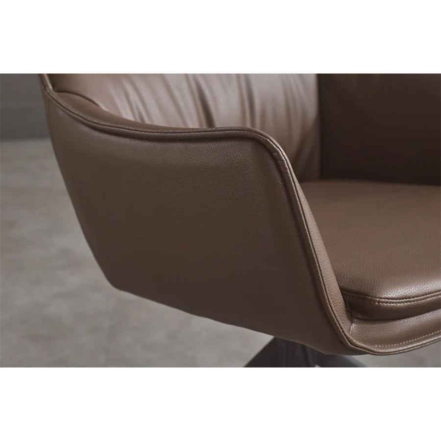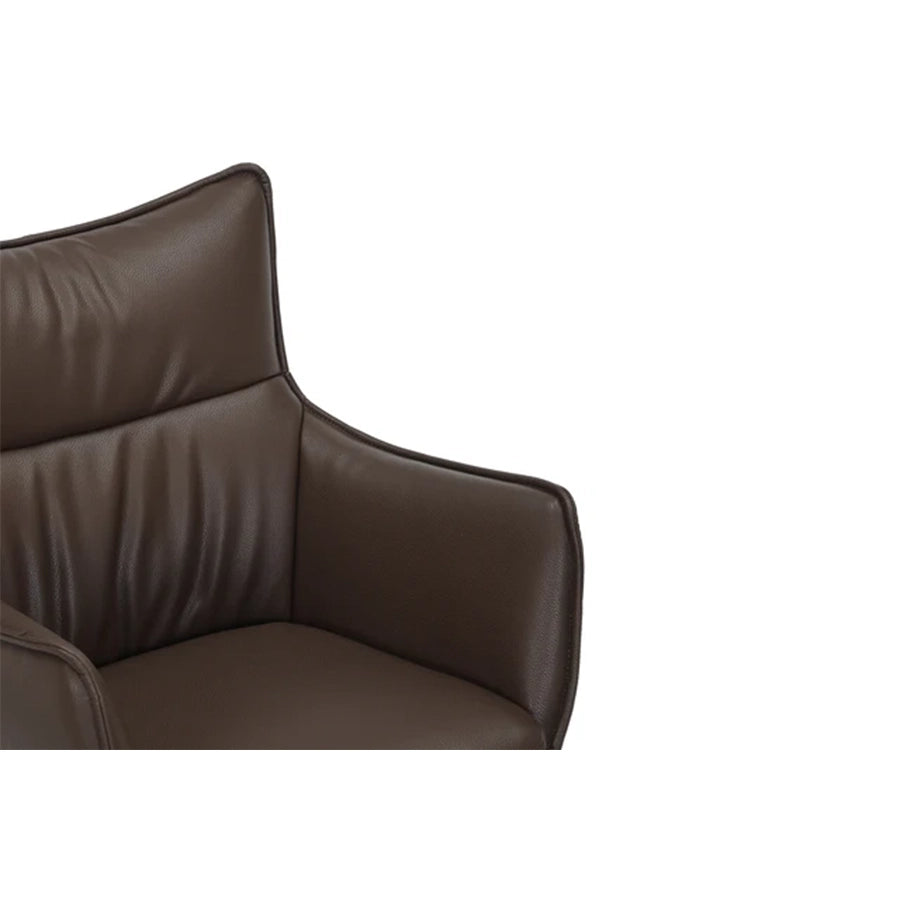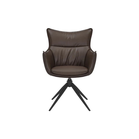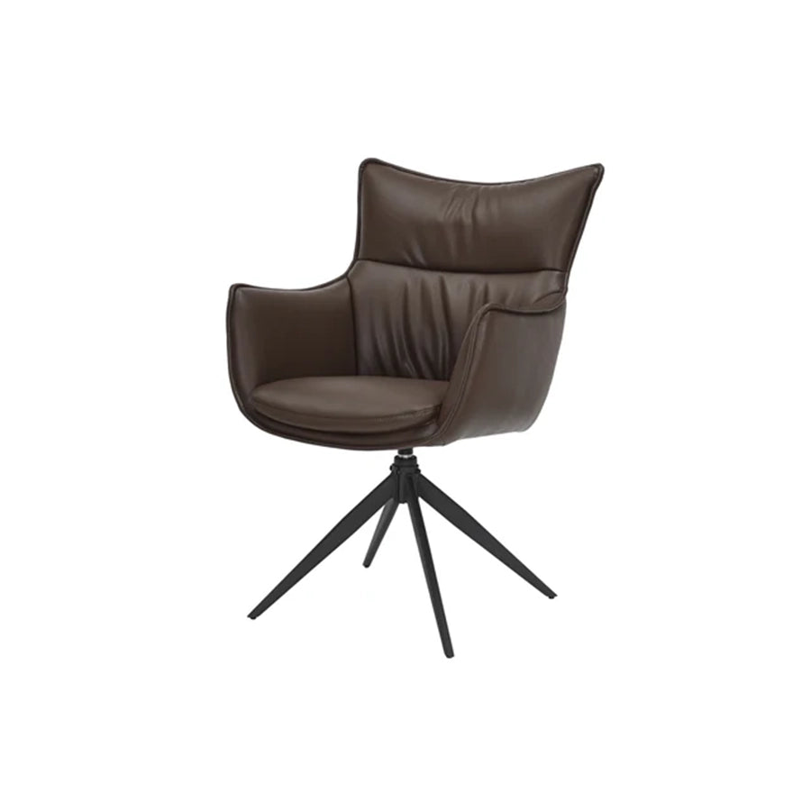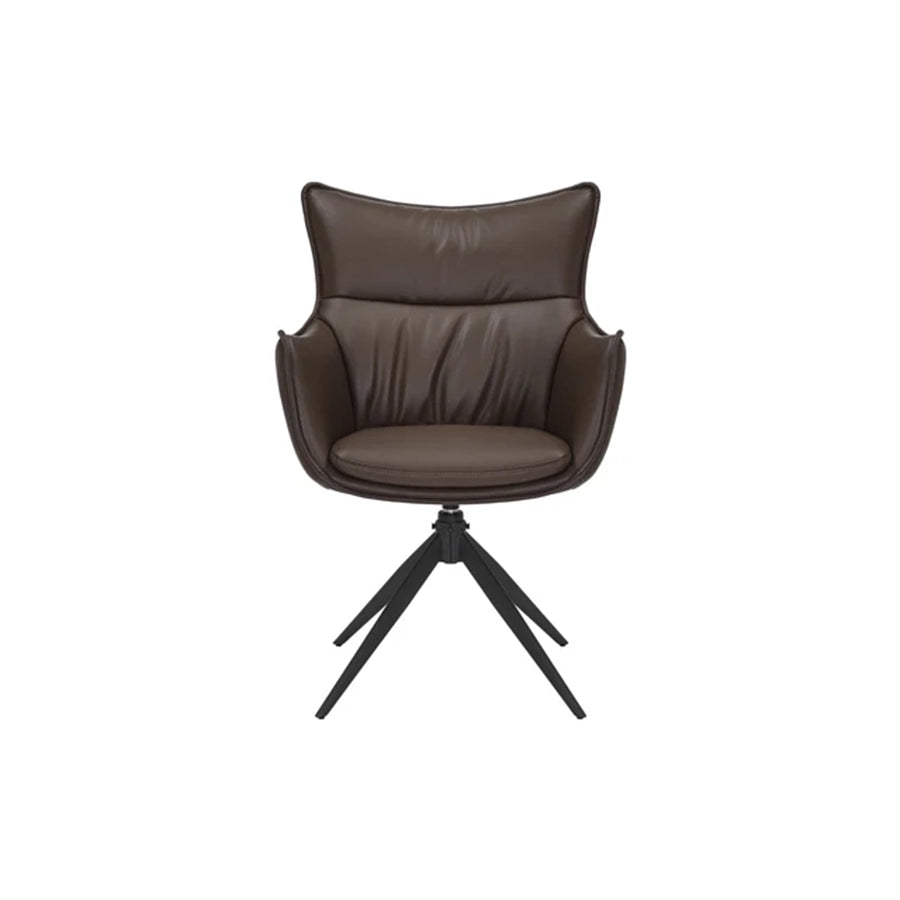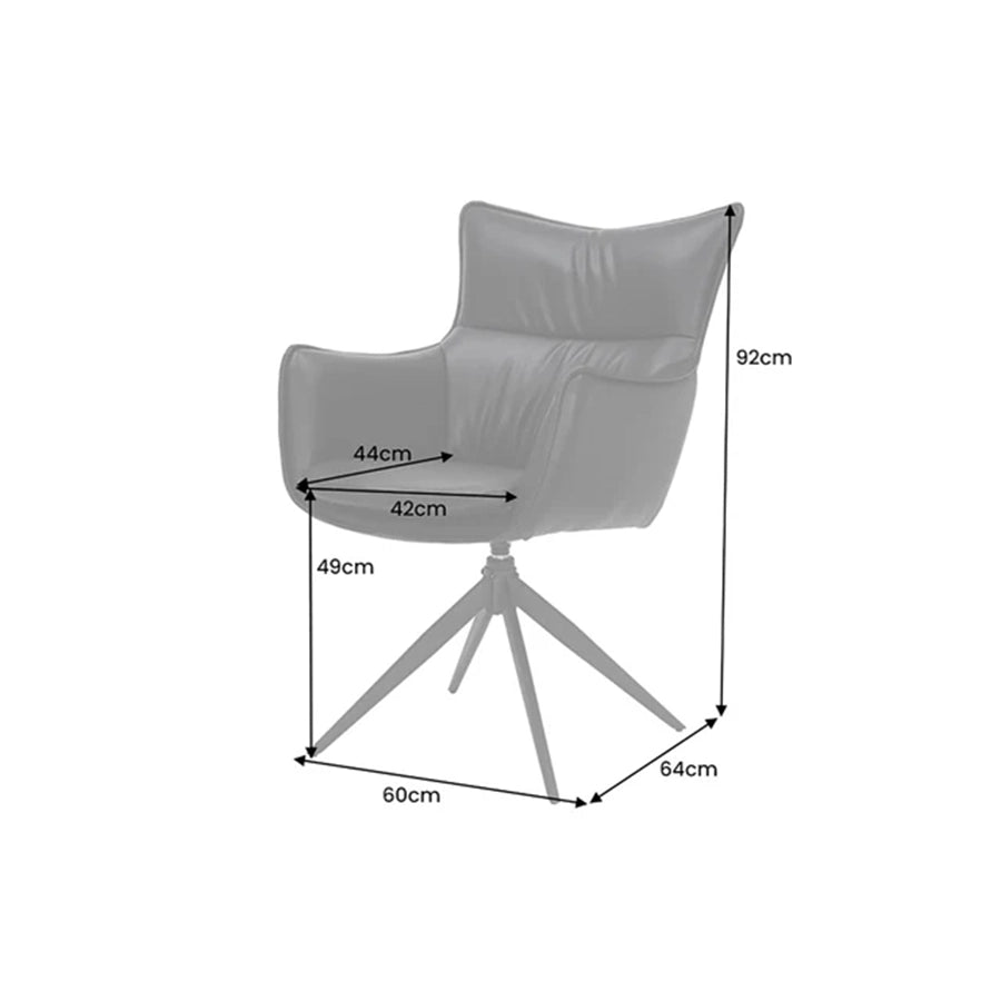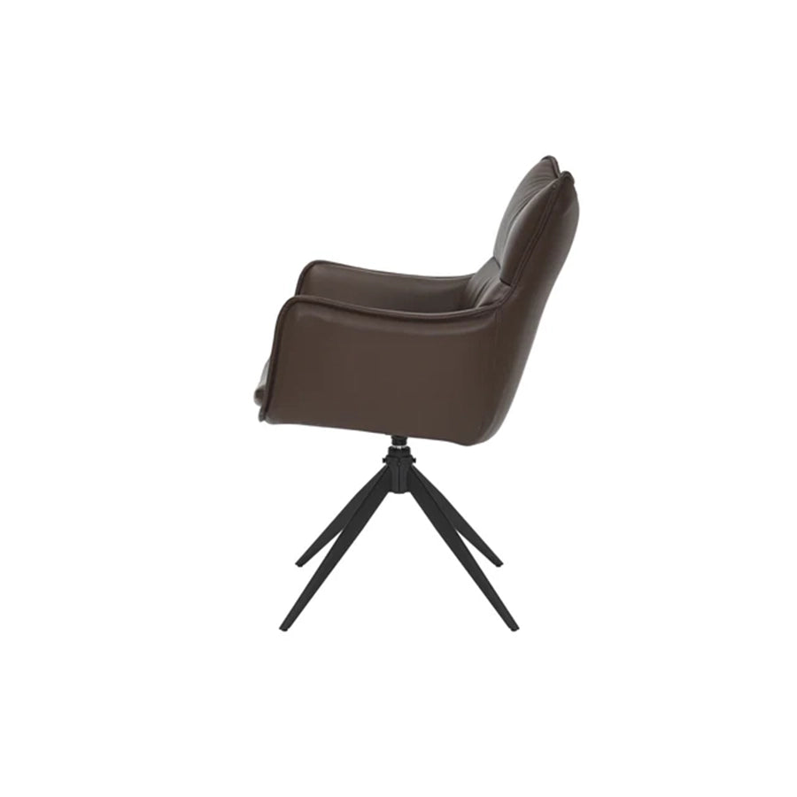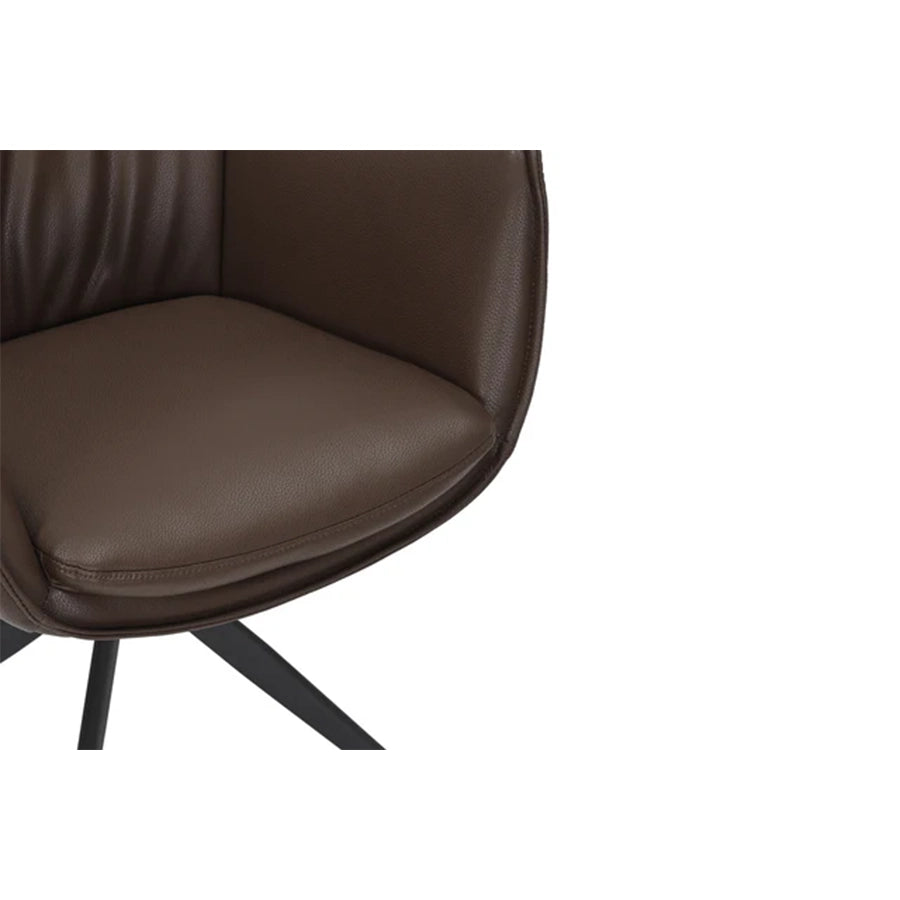 Vogue este alegerea potrivită dacă vrei un scaun care adaugă confort fără să devină element recunoscut. Baza rotativă îți oferă libertatea să te întorci spre discuție sau spre spațiul din jur, materialul poliuretan e simplu de întreținut, iar tonul maro se integrează ușor în decorul existent.