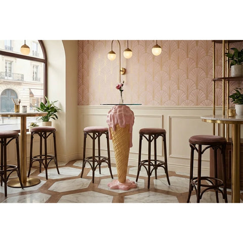 Masa bar Ice Cream aduce o notă sofisticată în amenajările moderne sau contemporane, completându-se cu scaune înalte cu structuri metalice fine sau tapițerii în tonuri neutre pentru un contrast plăcut. Într-o bucătărie deschisă către living, această masă poate servi ca o punte naturală între zone, invitând la conversații relaxate și momente plăcute în aer liber sau la interior.