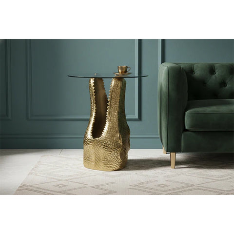 Masa cafea gold din metal si sticla Crocodile