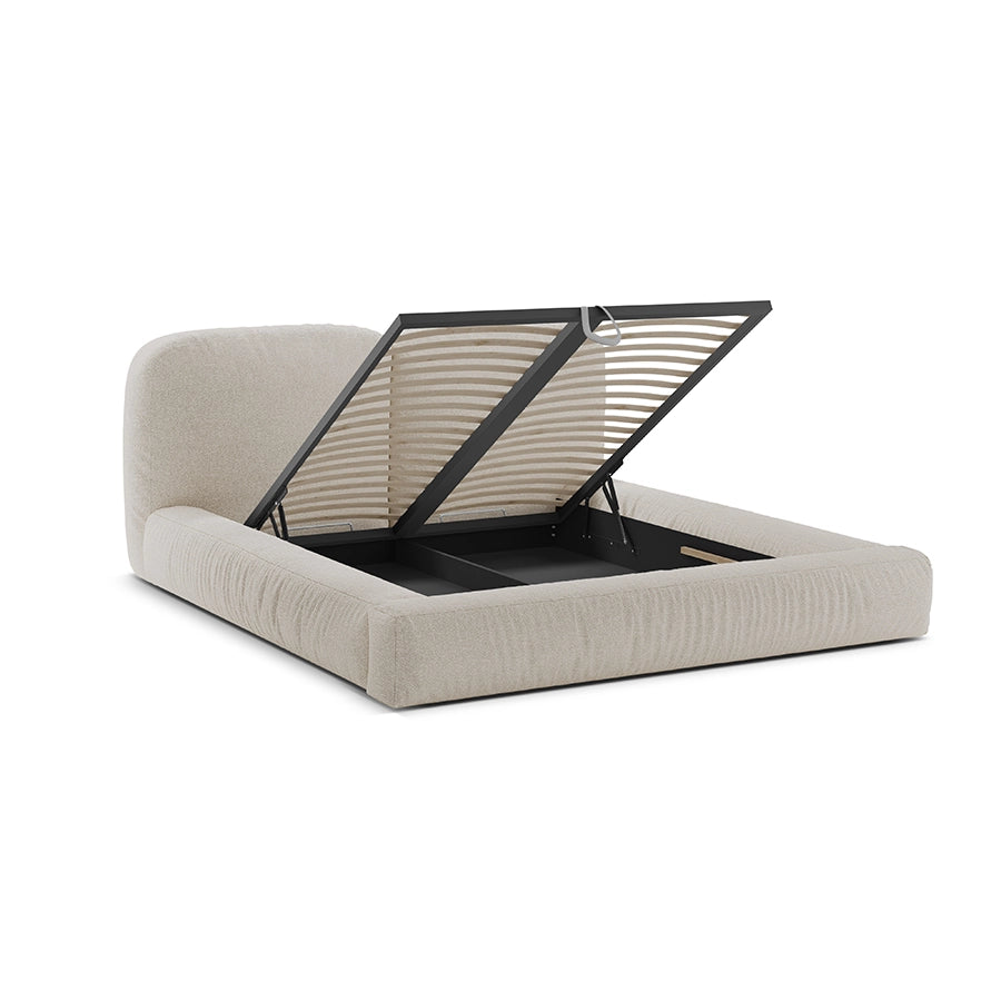 Patul Martina creează un refugiu de calm în dormitorul tău: textura bouclé aduce o senzație luxuriantă și tactilă, iar nuanța bej stabilizează paleta cromatică a camerei, oferind un fundal liniștitor pentru momentele de somn și relaxare. Așezat într-un dormitor modern sau minimalist, acesta invită la odihnă profundă și confort subtil — un spațiu în care te simți acasă de cum te întinzi pe el.