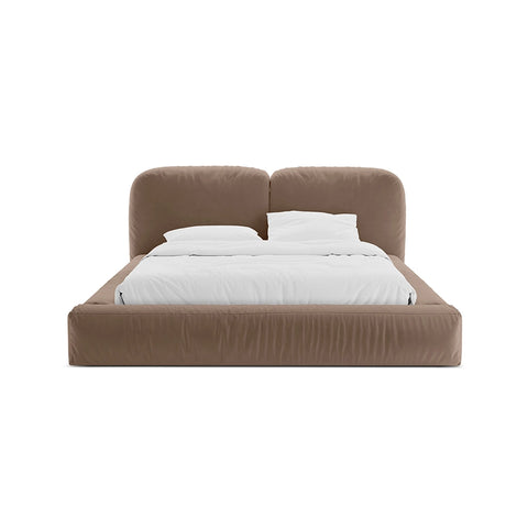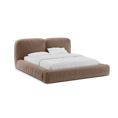 Acest pat devine elementul care structurează camera, fără să o domine, oferind un fundal neutru ce se potrivește cu palete cromatice diverse, textile fine și detalii minimaliste. Bejul catifelat al tapițeriei este expresia unui confort modern, prietenos și totodată sofisticat.