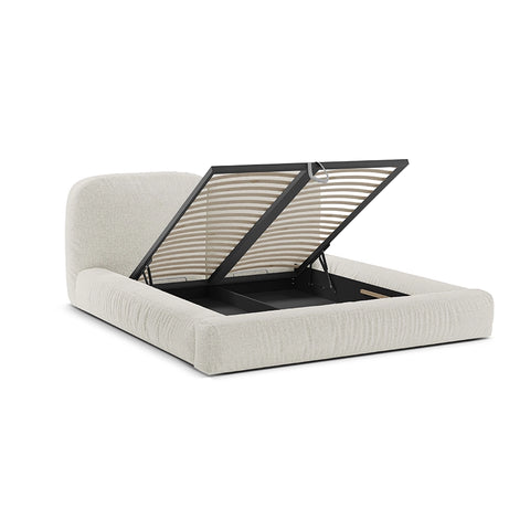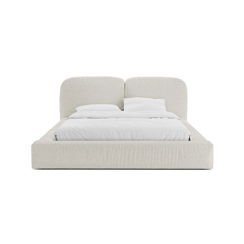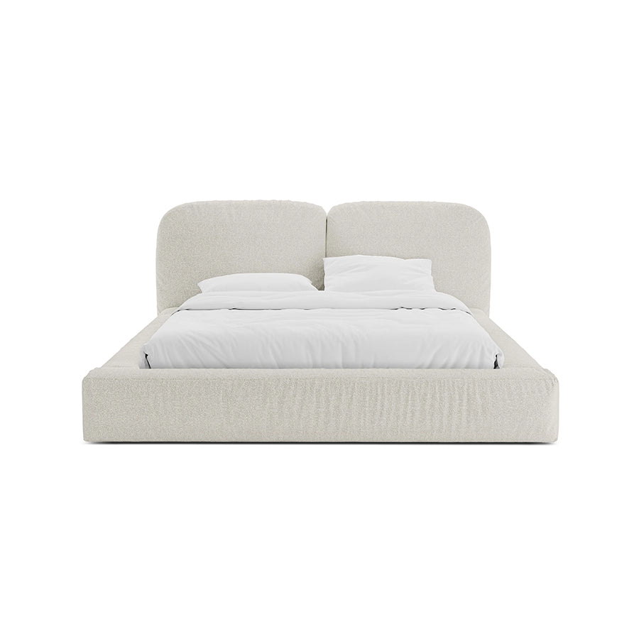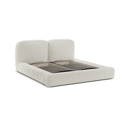 Patul Martina creează un refugiu de calm în dormitorul tău: textura bouclé aduce o senzație luxuriantă și tactilă, iar nuanța gri bej stabilizează paleta cromatică a camerei, oferind un fundal liniștitor pentru momentele de somn și relaxare. Așezat într-un dormitor modern sau minimalist, acesta invită la odihnă profundă și confort subtil — un spațiu în care te simți acasă de cum te întinzi pe el.