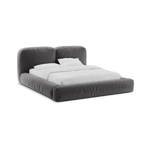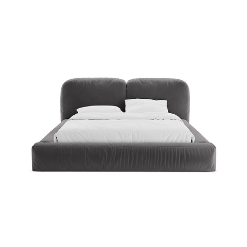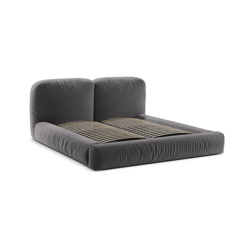 Acest pat devine elementul care structurează camera, fără să o domine, oferind un fundal neutru ce se potrivește cu palete cromatice diverse, textile fine și detalii minimaliste. Griul catifelat al tapițeriei este expresia unui confort modern, prietenos și totodată sofisticat.