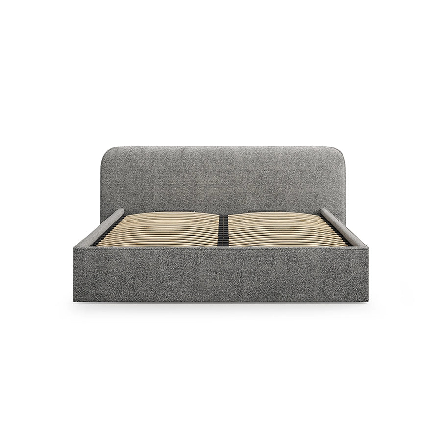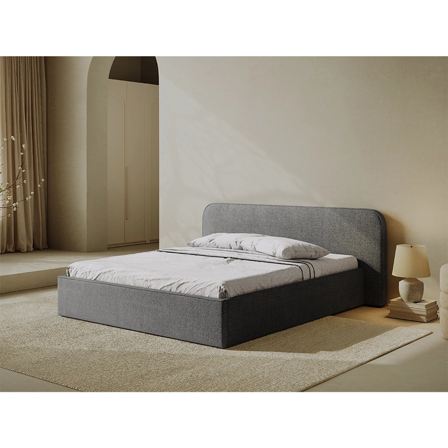 O prezenţă care radiază calm şi profunzime: patul Elizabeth în nuanţa graphite bouclé îţi oferă o bază de linişte în dormitor, completată de materiale fine şi proporţii generoase. Tapiţeria cu textură bouclé îmbracă cadrul robust, transformând fiecare seară într-o experienţă de relaxare şi rafinament.