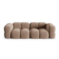 Canapeaua Loretto, în tonuri de bej închis, este o punte între confort și rafinament. Tapiseria din catifea, moale la atingere și vizual sofisticată, aduce o prezență gravă, dar totuși primitoare în living. Dimensiunea generoasă o recomandă pentru 4 persoane, un loc ideal pentru seri de cinema în familie sau conversații lungi, tihnite.