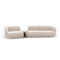 Canapeaua modulară modernă Miley are un aspect elegant și distinctiv. Configurația cu 3 locuri, însoțită de o măsuță de cafea integrată, adaugă un aer sofisticat interiorului. Forma minimalistă și liniile rotunjite sunt perfect aliniate cu cele mai noi tendințe în design.