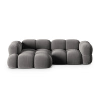 Un refugiu urban în tonuri de cer senin — canapeaua Loretto Left în gri catifelat combină eleganța vizuală cu o senzație tactilă densă. Cu spațiu generos pentru patru persoane și colțul orientat spre stânga, creează o prezență primitoare și sofisticată, ideală pentru momente de relaxare sofisticată.