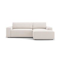 Canapeaua extensibilă cu colț bej deschis din textil Jodie Right îmbină designul modern cu funcționalitatea, oferind un spațiu de relaxare versatil. Tapițeria din textil Megan de culoare bej deschis conferă un aspect elegant și ușor de integrat în diverse tipuri de decor.