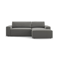 Canapeaua extensibilă cu colț gri deschis din catifea Jodie Right îmbină designul modern cu funcționalitatea, oferind un spațiu de relaxare versatil. Tapițeria din textil Megan de culoare gri deschis conferă un aspect elegant și ușor de integrat în diverse tipuri de decor.