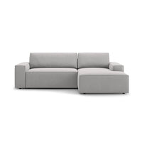 Canapeaua extensibilă cu colț gri deschis din textil Jodie Right îmbină designul modern cu funcționalitatea, oferind un spațiu de relaxare versatil. Tapițeria din textil Megan de culoare gri deschis conferă un aspect elegant și ușor de integrat în diverse tipuri de decor.