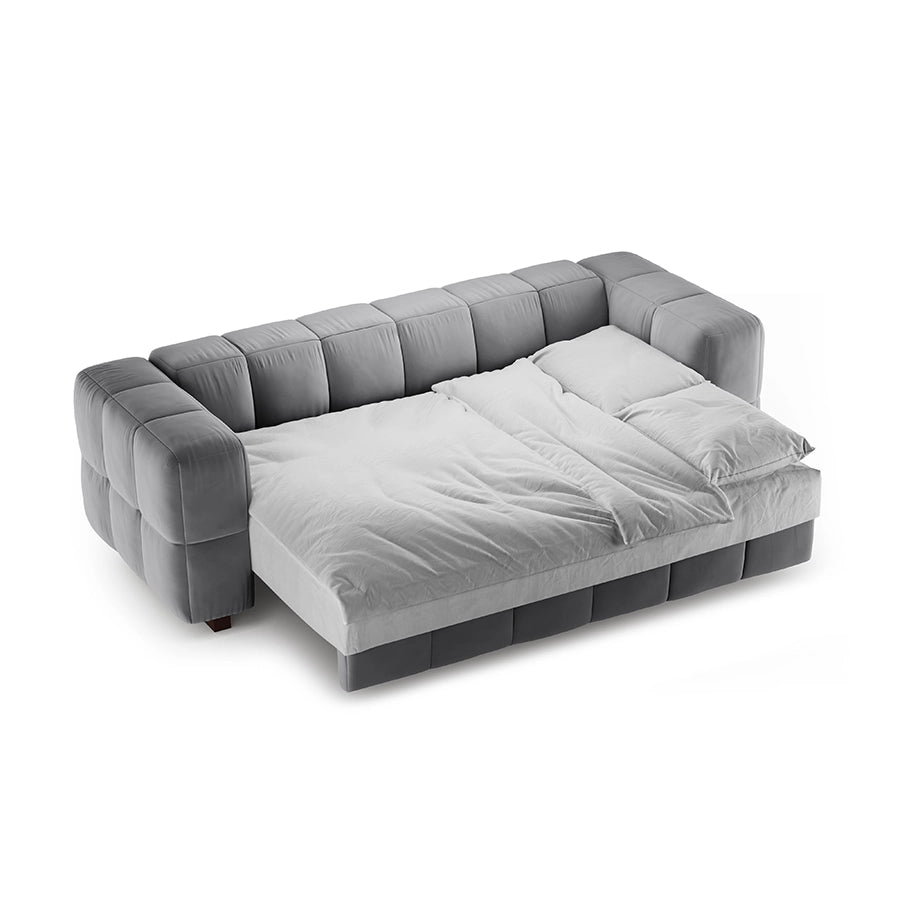 Un echilibru între lux discret și confort generos — canapeaua extensibilă Opus, tapițată în catifea gri, transformă orice living într-un spațiu primitor și elegant. Textura catifelei și silueta robustă invită la relaxare, în timp ce mecanismul extensibil adaugă funcționalitate fără compromisuri.