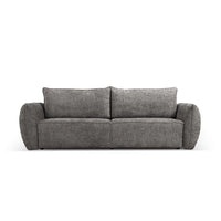 Materiale: textil chenille din poliester, lemn de pin, pal, placaj, picioare din plastic, umplutura din spuma poliuretanica cu densitatea 30 kg/mc