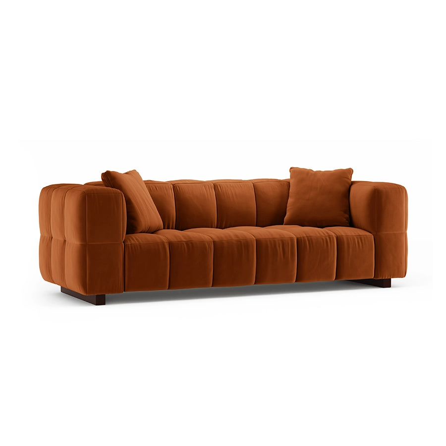 Un echilibru între lux discret și confort generos — canapeaua extensibilă Opus, tapițată în catifea teracota, transformă orice living într-un spațiu primitor și elegant. Textura catifelei și silueta robustă invită la relaxare, în timp ce mecanismul extensibil adaugă funcționalitate fără compromisuri.