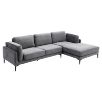 Canapeaua gri cu colț din catifea Manhatten îmbină eleganța clasică a catifelei cu un design contemporan, oferind atât confort, cât și stil. Tapițeria din catifea de calitate și forma sa modulară permit adaptarea ușoară în orice spațiu.