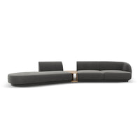Canapea modernă modulară Miley are un aspect elegant, unic. Combinația cu 4 locuri cu măsuță de cafea aduce un stil sofisticat interiorului. Forma minimalistă și formele rotunjite sunt perfect în acord cu ultimele tendințe.