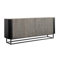 Comoda Croco în nuanțe de gri aduce în prim-plan textura bogată și caldă a lemnului de mango modelat 3D, susținută de o bază metalică neagră robustă. Designul său sofisticat transformă spațiul într-o scenă de rafinament vizual — fie că este situată în living, hol sau dining.