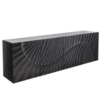Comoda Scorpion — sculpturală, urbană, seducător construită — nu este doar un simplu corp de mobilier, ci o declarație de stil. Finisajul negru intens al lemnului de mango este modelat tridimensional, creând un efect de relief unic ce captează privirea și adaugă profunzime vizuală. Suspendată fără picioare vizibile, aceasta pare să plutească pe perete, echilibrând cu grație utilul și esteticul.