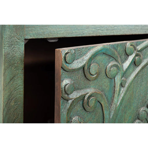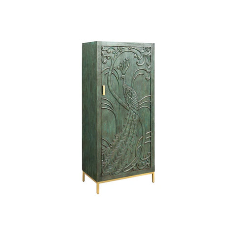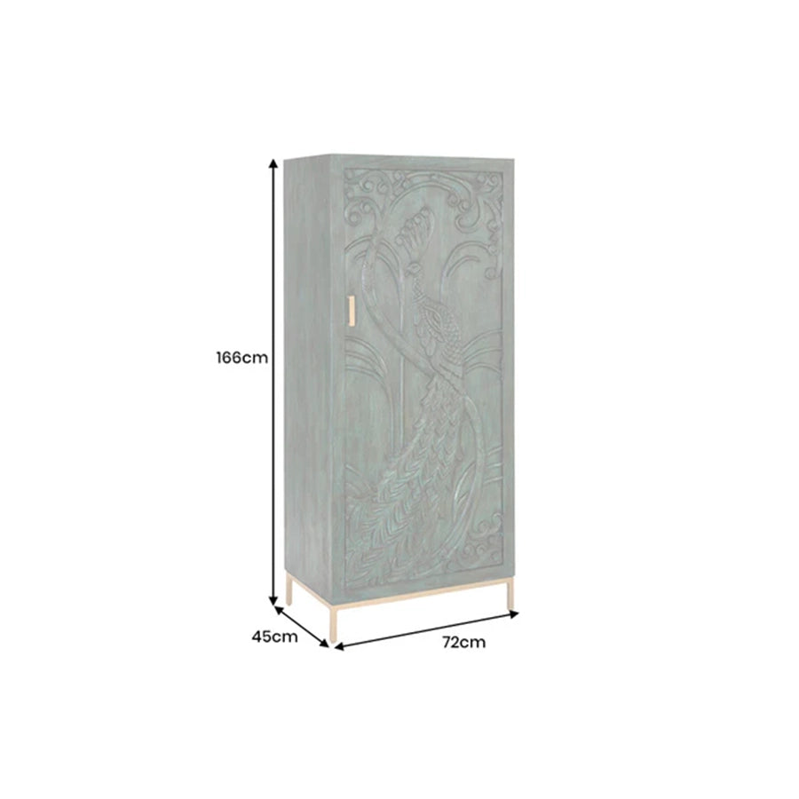 Într-o eră a minimalismului, Dulapul Peacock se afirmă printr-o prezență vibrantă și autentică. Cu o înălțime de 170 cm și o adâncire de 45 cm, acest dulap din lemn de mango verde aduce în spațiul tău o notă de culoare și textură naturală. Fie că îl plasezi în dormitor, living sau hol, el devine un punct de atracție, combinând funcționalitatea cu estetica.