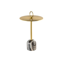Poziționeaz-o într-un colț de lectură, lângă o canapea din catifea sau un fotoliu cu linii curbate. Marmura sa aduce un contrast interesant într-un decor neutru, iar aurul completează armonios interioarele cu accente metalice sau textile prețioase. Un obiect ideal pentru a susține o carte, o lumânare parfumată sau un pahar de vin — în momentele în care frumosul capătă formă prin detaliile mici.