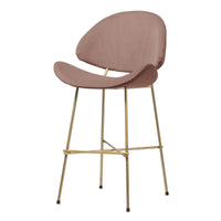 Scaun bar roz din velur Cheri Low Gold Iker Promo