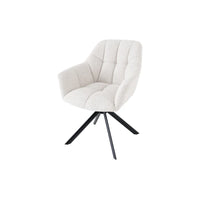 Un scaun care redefinește eleganța și funcționalitatea în spațiul tău de dining. Tapițeria din material buclat alb oferă o textură plăcută și un aer sofisticat, iar mecanismul rotativ la 180° adaugă libertatea de mișcare și confortul pe care îl dorești. Structura metalică neagră subliniază contrastul modern și conferă stabilitate, transformând fiecare moment petrecut la masă într-o experiență relaxantă și rafinată.