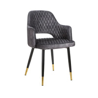 Rafinat și atemporal, scaunul Paris impresionează prin liniile sale clasice reinterpretate într-o viziune modernă. Catifeaua moale, în nuanță gri neutră, devine fundalul perfect pentru detaliile atent lucrate și pentru confortul discret. Este acel gen de piesă care aduce eleganță fără ostentație – un companion perfect pentru momentele de convivialitate în jurul mesei.