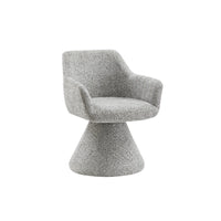 O prezență modernă și atemporală, scaunul Ambiento în gri, tapițat în chenille, aduce în același timp textură luxoasă și libertate de mișcare. Forma sa confortabilă și baza rotativă transformă fiecare moment petrecut în jurul mesei într-o experiență relaxantă, dar elegantă.