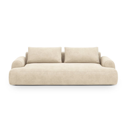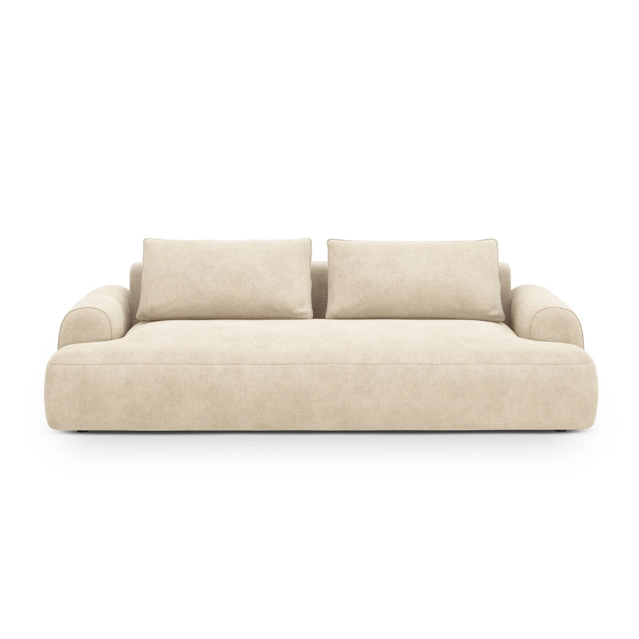 Canapeaua Bona este genul acela de piesă care îți schimbă felul în care locuiești. Te întâmpină cu o textură moale, catifelată, într-o nuanță de bej deschis care domolește vizual încăperea și creează un sentiment de calm imediat ce intri în living. Este generoasă, confortabilă și gândită pentru ritmul real al unei case: loc de conversații lungi, loc de întins picioarele după o zi încărcată și, atunci când ai nevoie, loc de dormit pentru invitații care rămân peste noapte.