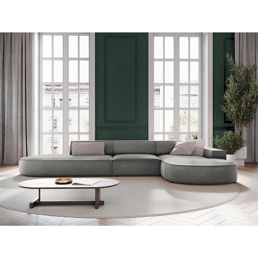 Canapea gri din catifea cu colt round Right Jodie