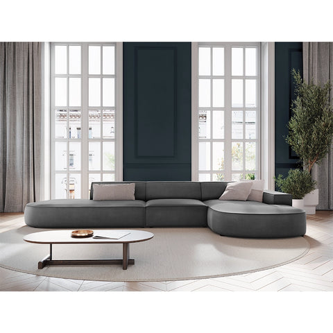 Canapea gri inchis din catifea cu colt round Right Jodie
