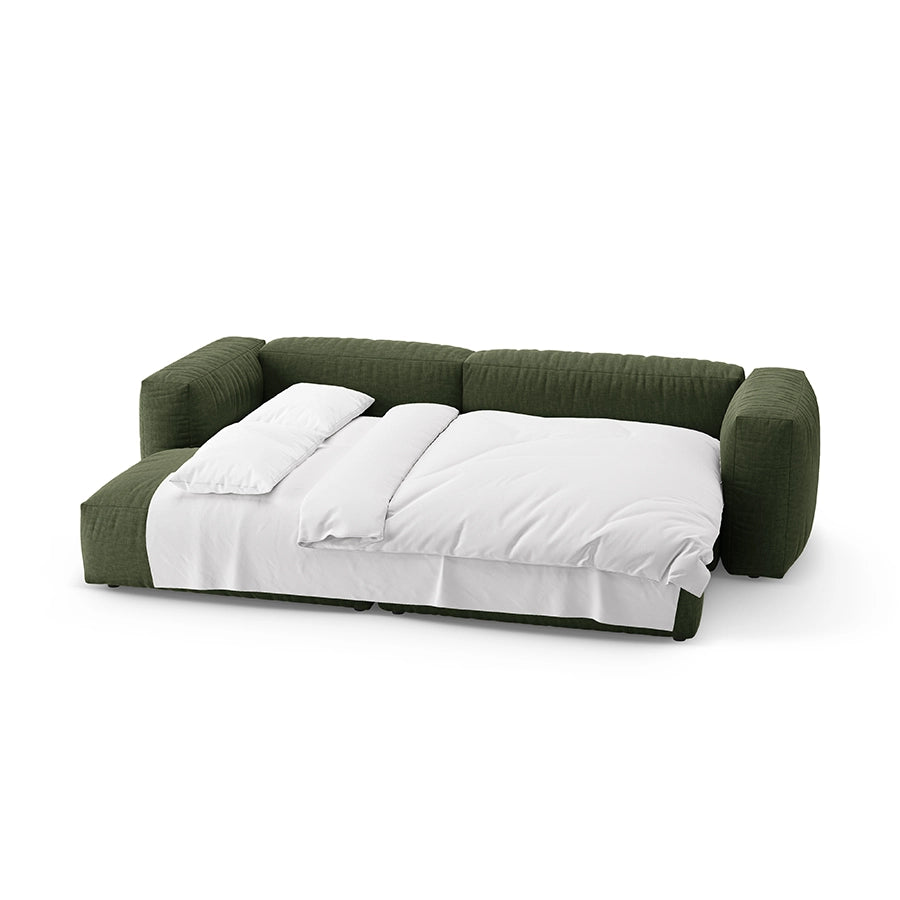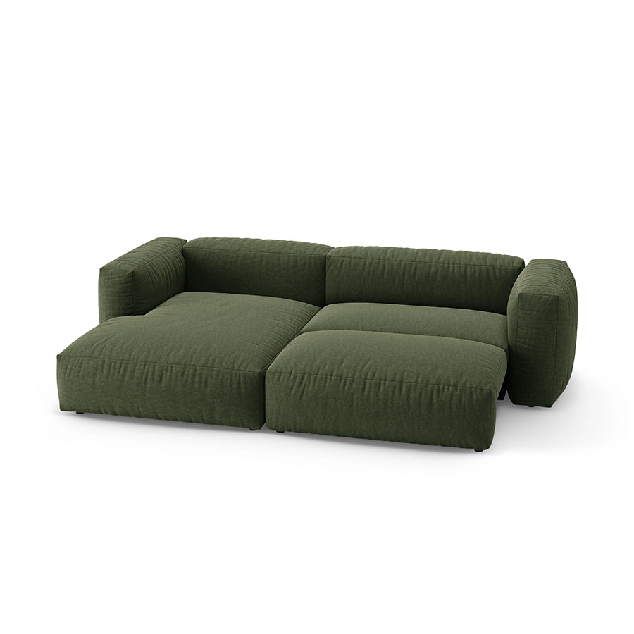 Mecanismul extensibil transformă canapeaua într-o suprafață suplimentară pentru odihnă, adaptându-se ritmului locuirii contemporane. Structura din lemn de pin și umplutura densă contribuie la stabilitate și confort constant, iar nuanța de verde permite integrarea ușoară în palete cromatice variate. Este o piesă care susține viața reală — versatilă, utilizabilă zilnic și echilibrată vizual.
