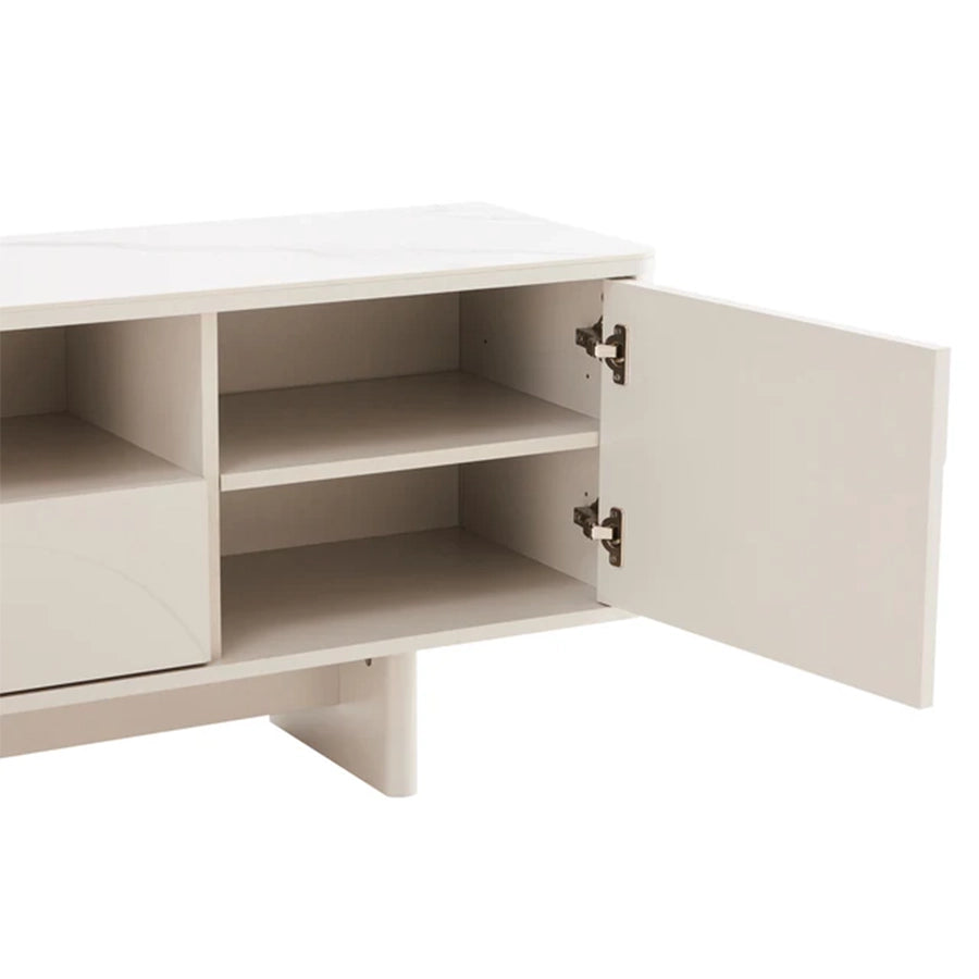 Comoda TV alba din MDF si ceramica Savoy