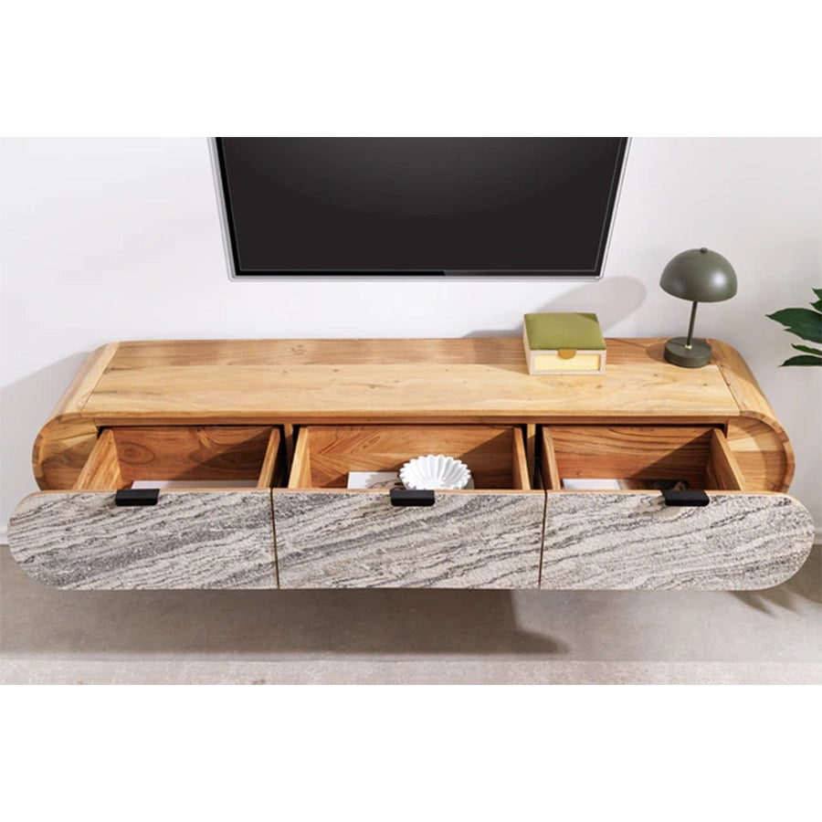 Comoda TV Organic suspendată nu e doar mobilier — e o declarație de echilibru vizual. Când o privești, combinația de maro și gri calmează privirea, în timp ce designul plutitor amplifică lumina din cameră și creează un cadru curat, ordonat și relaxant. În jurul ei, camerele respiră mai liber, iar tu te simți ca într-un sanctuar de confort modern, unde momentele de film sau socializare devin mai simple și mai plăcute — un loc în care detaliile se simt organice și armonioase.