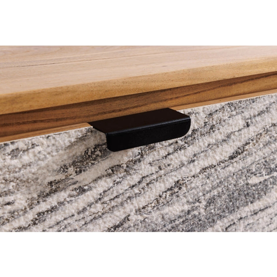 — Materiale: lemn de salcam, furnir cu aspect de piatra
