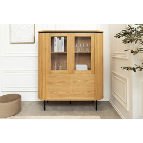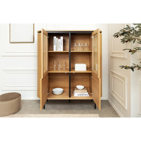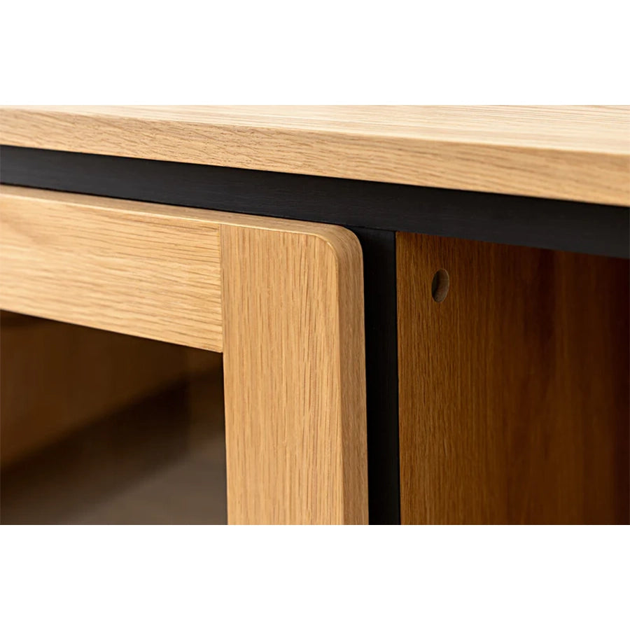 — Material: material din lemn cu furnir de stejar, uși cu închidere magnetică, sticlă