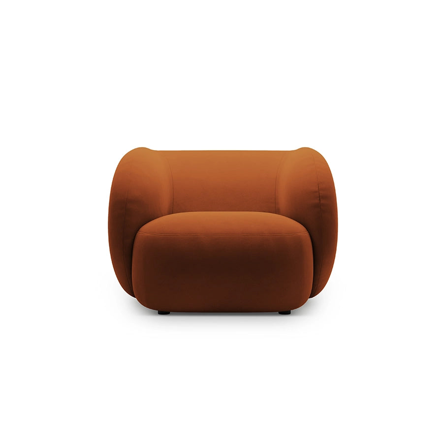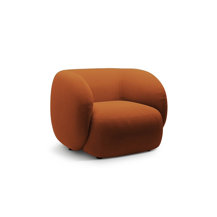 Un fotoliu care te invită să te oprești din ritmul grăbit al zilei. Kate aduce în spațiu o prezență calmă și elegantă, cu forme rotunjite ce te îmbrățișează confortabil. Catifeaua teracota adaugă finețe și căldură vizuală, iar proporțiile generoase îl transformă într-un loc perfect pentru momentele de liniște, o carte bună sau o conversație relaxată.