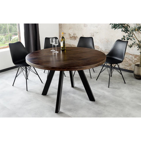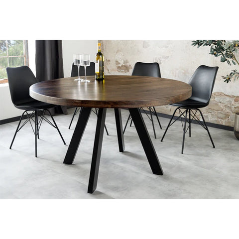 Masa dining Iron Craft maro închis este o masă de dining rotundă din lemn masiv și metal, concepută pentru spații moderne și funcționale. Blatul generos de 120 cm oferă suficient loc pentru cine în familie sau întâlniri cu prietenii, iar designul în stil industrial-scandinav echilibrează naturalețea lemnului cu structura robustă metalică.