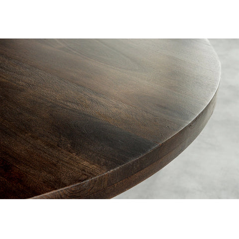 Forma rotundă încurajează conversația în timpul mesei și creează un punct central armonios în zona de dining. Finisajul maro închis pune în valoare textura lemnului, aducând profunzime și căldură într-un interior contemporan sau clasic reinterpretat. Este o masă care funcționează la fel de bine în bucătării deschise, cât și în dininguri dedicate.