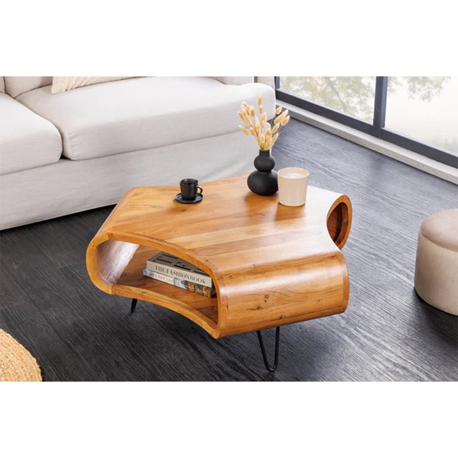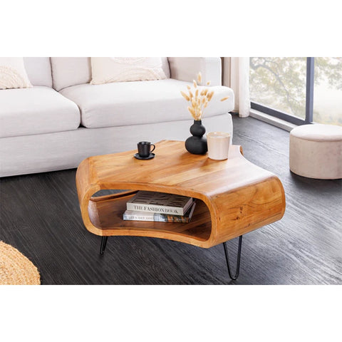 Masuta cafea maro din lemn 90 cm Organic Promo