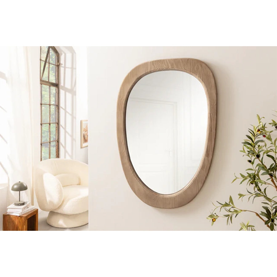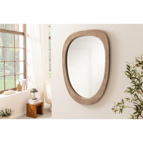 Această oglindă nu este doar un simplu obiect decorativ, ci un companion al ritualurilor zilnice: te privește dimineața când te pregătești, reflectă lumina blândă a apusului și adaugă profunzime spațiului tău. Cu rama sa caldă din lemn, te conectează la natura ambientului tău și îți amintește că frumusețea vine în detalii — făcându-te să te simți acasă, autentic și în armonie.