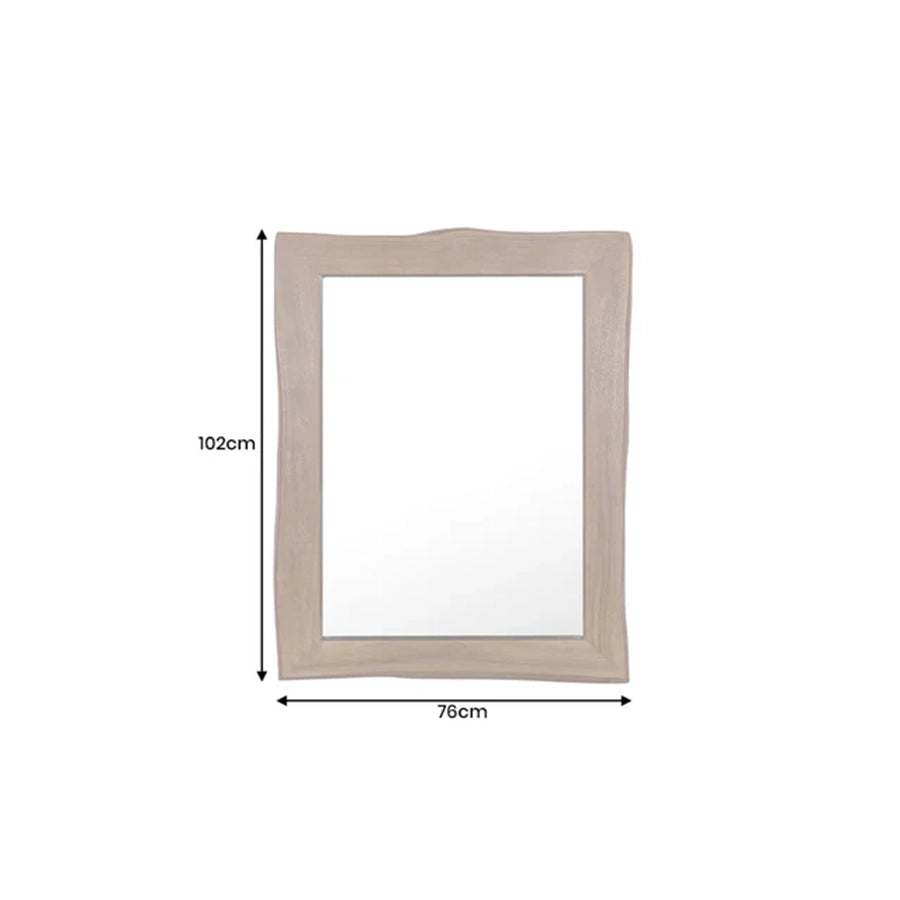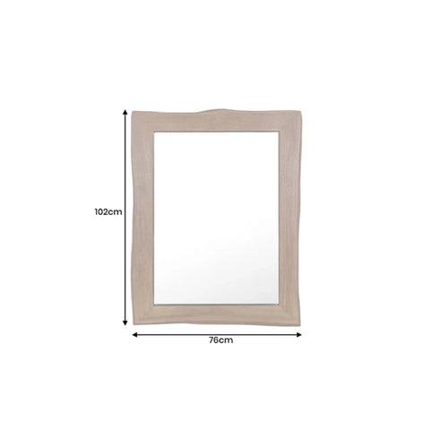 Această oglindă cu ramă din lemn de salcâm, având dimensiunile de 100 cm înălțime și 76 cm lățime, adaugă o notă de eleganță naturală oricărei încăperi. Grosimea ramei de 4 cm conferă un aspect robust și autentic, iar finisajul maro cald completează perfect orice decor.