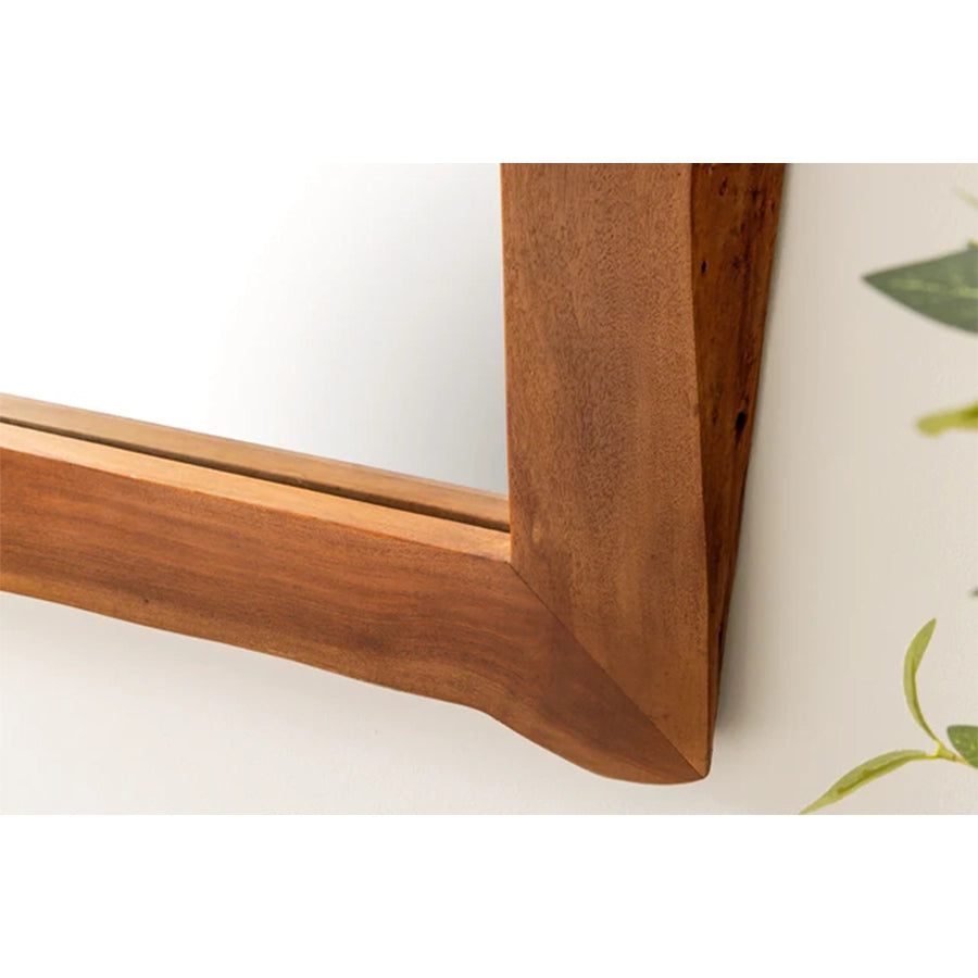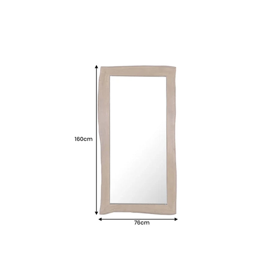 Această oglindă cu ramă din lemn de salcâm, având dimensiunile de 160 cm înălțime și 76 cm lățime, adaugă o notă de eleganță naturală oricărei încăperi. Grosimea ramei de 4 cm conferă un aspect robust și autentic, iar finisajul maro cald completează perfect orice decor.