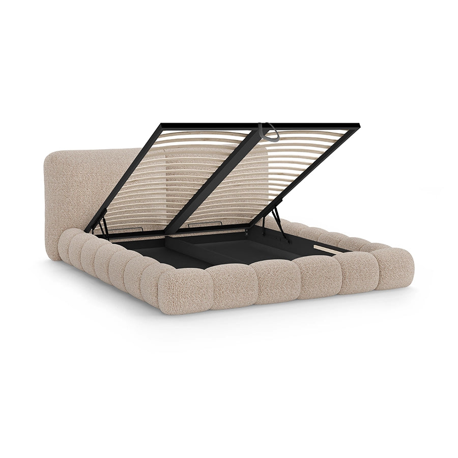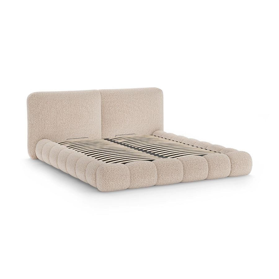 Patul Solange este o soluție elegantă și confortabilă pentru dormitor, conceput pentru utilizare zilnică și pentru momentele de odihnă bine meritate. Tapițeria din chenille bej sand oferă un finisaj moale și plăcut la atingere, aducând o textură caldă și sofisticată în camera ta. Cadrul robust și proporțiile echilibrate îl transformă într-o piesă centrală care se potrivește într-un dormitor modern, minimalist sau scandinav.