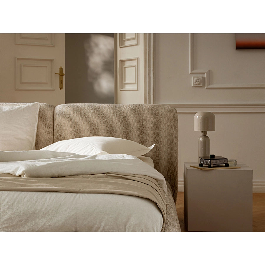 Patul bej sand din chenille Solange creează o bază calmă și luminoasă într-un dormitor amenajat în tonuri neutre sau pastelate. Nuanța bej sand se combină armonios cu textile naturale (lenjerii din bumbac, in sau sateen), covoare neutre și mobilier din lemn deschis — pentru un ambient elegant, relaxat și coerent vizual.