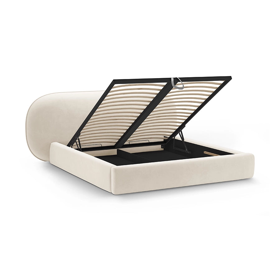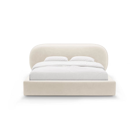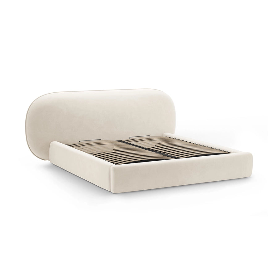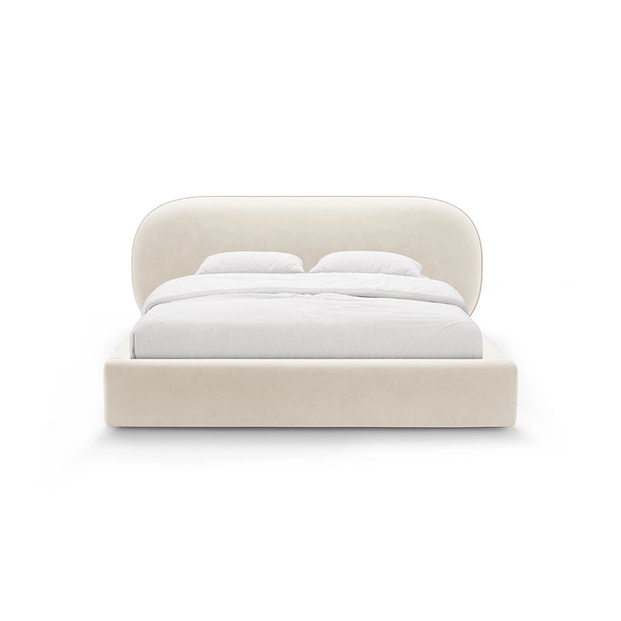 Patul Ivory din catifea Ovalo se integrează excelent într-un dormitor cu paletă cromatică neutră, unde nuanțele calde și naturale predomină. Finisajul ivory creează o bază armonioasă pentru textile în tonuri similare sau contraste delicate (cum ar fi gri deschis sau taupe), fără a încărca vizual spațiul. Poate fi completat cu noptiere din lemn natural, corpuri de iluminat simple și covoare texturate pentru un ambient liniștit și elegant.